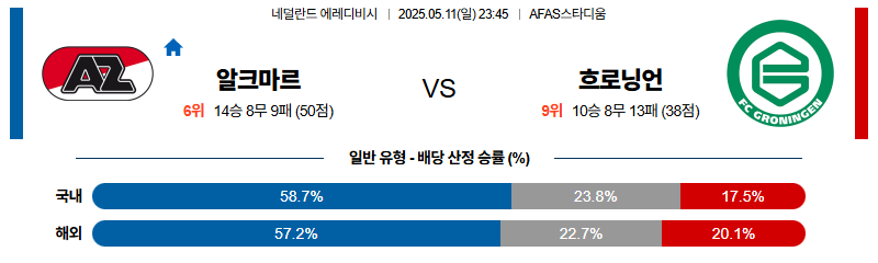 알크마르 대 흐로닝언 에레디비지에 05월11일 맞대결 생중계, 스포츠중계, 스포츠분석