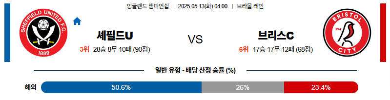 셰필드유나이티드 대 브리스톨시티 잉글랜드챔피언쉽 05월13일 맞대결 생중계, 스포츠중계, 스포츠분석