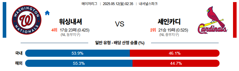 워싱턴 대 세인트루이스 MLB 05월12일 맞대결 생중계, 스포츠중계, 스포츠분석