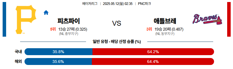 피츠버그 대 애틀랜타 MLB 05월12일 맞대결 생중계, 스포츠중계, 스포츠분석