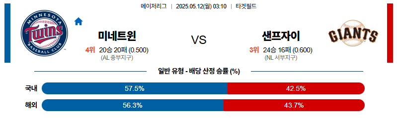 미네소타 대 샌프란시스코 MLB 05월12일 맞대결 생중계, 스포츠중계, 스포츠분석