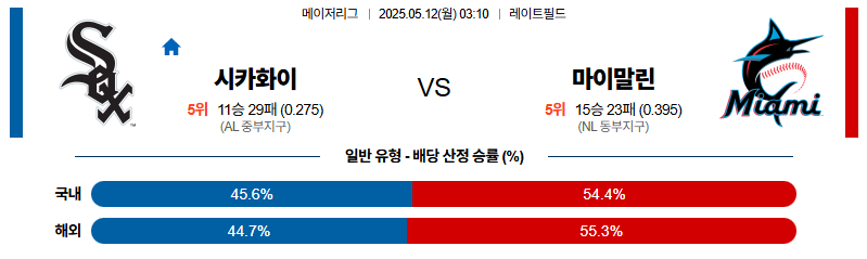 시카고W 대 마이애미 MLB 05월12일 맞대결 생중계, 스포츠중계, 스포츠분석