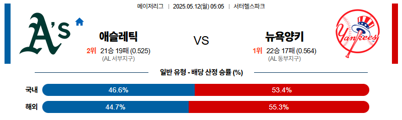 애슬레틱스 대 뉴욕양키스 MLB 05월12일 맞대결 생중계, 스포츠중계, 스포츠분석