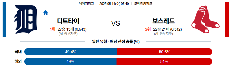 디트로이트 대 보스턴 MLB 05월14일 맞대결 생중계, 스포츠중계, 스포츠분석