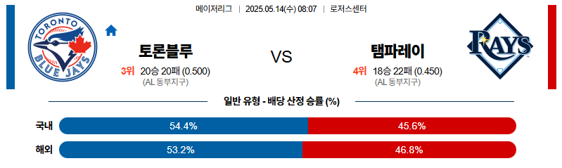 토론토 대 탬파베이 MLB 05월14일 맞대결 생중계, 스포츠중계, 스포츠분석