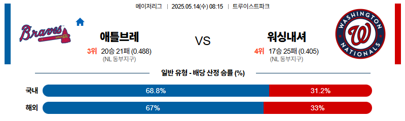 애틀랜타 대 워싱턴 MLB 05월14일 맞대결 생중계, 스포츠중계, 스포츠분석