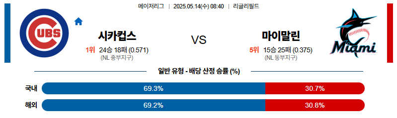 시카고컵스 대 마이애미 MLB 05월14일 맞대결 생중계, 스포츠중계, 스포츠분석