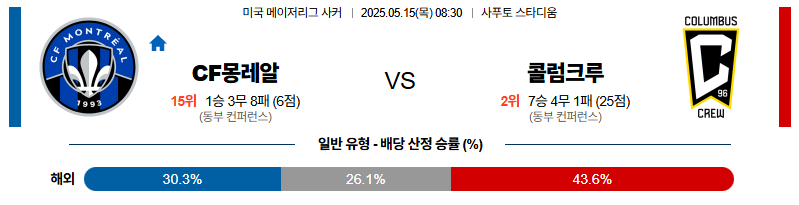 몬트리올 대 콜럼버스 메이저리그사커 05월15일 맞대결 생중계, 스포츠중계, 스포츠분석