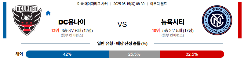 DC유나이티드 대 뉴욕시티 메이저리그사커 05월15일 맞대결 생중계, 스포츠중계, 스포츠분석