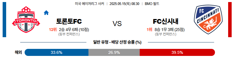 토론토 대 신시내티 메이저리그사커 05월15일 맞대결 생중계, 스포츠중계, 스포츠분석