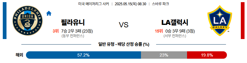 필라델피아 대 LA갤럭시 메이저리그사커 05월15일 맞대결 생중계, 스포츠중계, 스포츠분석