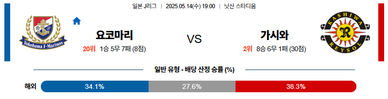 요코하마 대 가시와 J리그1 05월14일 맞대결 생중계, 스포츠중계, 스포츠분석