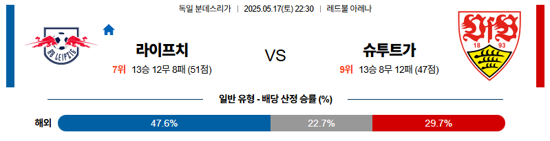 라이프치히 대 슈투트가르트 분데스리가 05월17일 맞대결 생중계, 스포츠중계, 스포츠분석