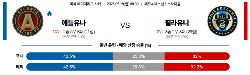 애틀랜타 대 필라델피아 메이저리그사커 05월18일 맞대결 생중계, 스포츠중계, 스포츠분석