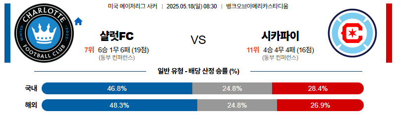 샬럿 대 시카고 메이저리그사커 05월18일 맞대결 생중계, 스포츠중계, 스포츠분석