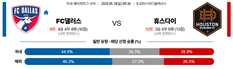 댈러스 대 휴스턴 메이저리그사커 05월18일 맞대결 생중계, 스포츠중계, 스포츠분석