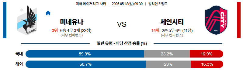 미네소타 대 세인트루이스 메이저리그사커 05월18일 맞대결 생중계, 스포츠중계, 스포츠분석