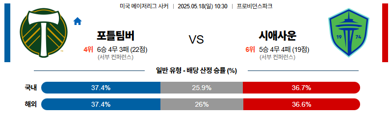 포틀랜드 대 시애틀 메이저리그사커 05월18일 맞대결 생중계, 스포츠중계, 스포츠분석