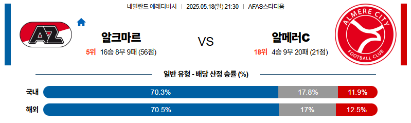알크마르 대 알메러시티 에레디비지에 05월18일 맞대결 생중계, 스포츠중계, 스포츠분석