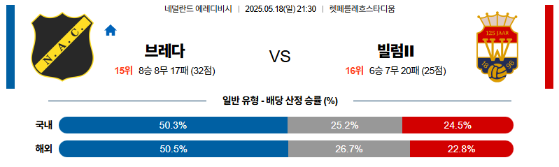 브레다 대 빌럼II 에레디비지에 05월18일 맞대결 생중계, 스포츠중계, 스포츠분석