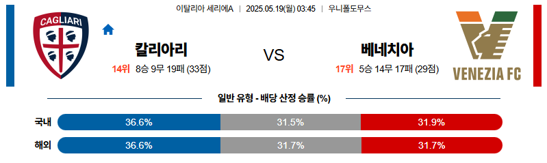 칼리아리 대 베네치아 세리에A 05월19일 맞대결 생중계, 스포츠중계, 스포츠분석