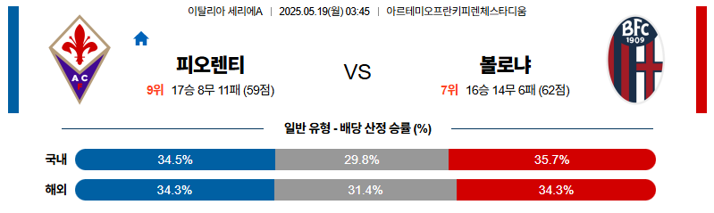 피오렌티나 대 볼로냐 세리에A 05월19일 맞대결 생중계, 스포츠중계, 스포츠분석