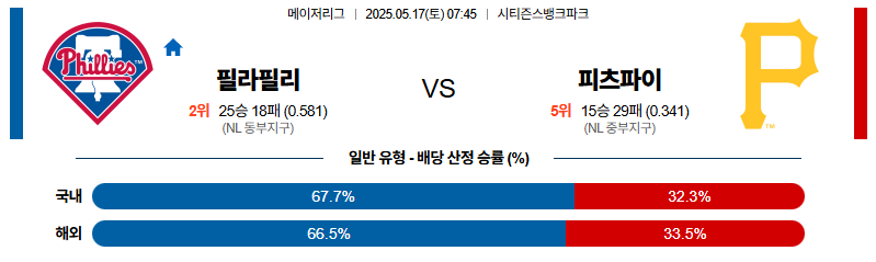 필라델피아 대 피츠버그 MLB 05월17일 맞대결 생중계, 스포츠중계, 스포츠분석