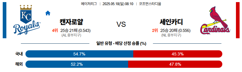 캔자스시티 대 세인트루이스 MLB 05월18일 맞대결 생중계, 스포츠중계, 스포츠분석
