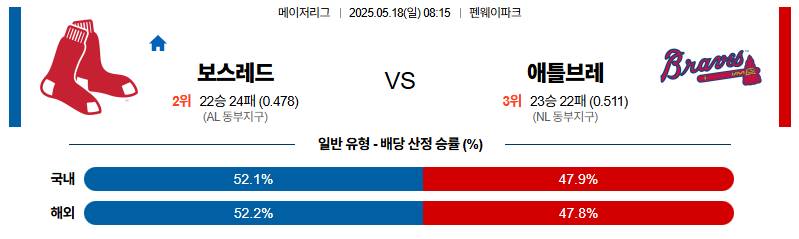 보스턴 대 애틀랜타 MLB 05월18일 맞대결 생중계, 스포츠중계, 스포츠분석