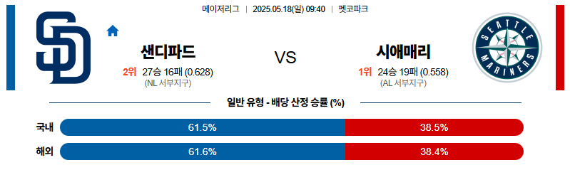 샌디에이고 대 시애틀 MLB 05월18일 맞대결 생중계, 스포츠중계, 스포츠분석