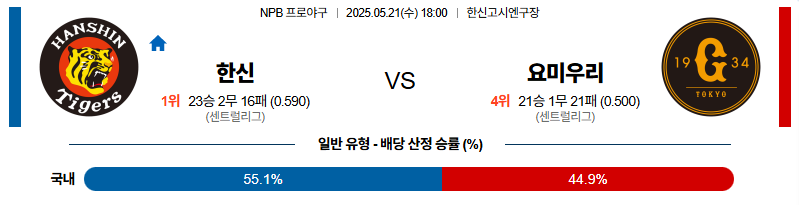 한신 대 요미우리 NPB 05월21일 맞대결 생중계, 스포츠중계, 스포츠분석