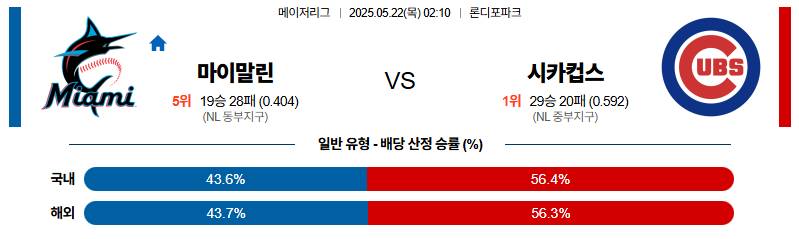 마이애미 대 시카고컵스 MLB 05월22일 맞대결 생중계, 스포츠중계, 스포츠분석
