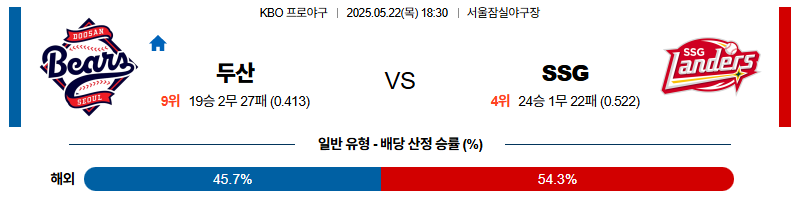 두산 대 SSG KBO 05월22일 맞대결 생중계, 스포츠중계, 스포츠분석