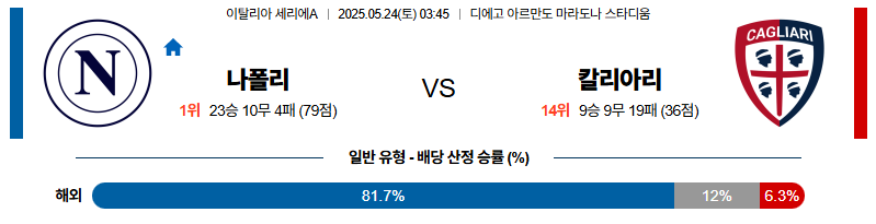 나폴리 대 칼리아리 세리에A 05월24일 맞대결 생중계, 스포츠중계, 스포츠분석
