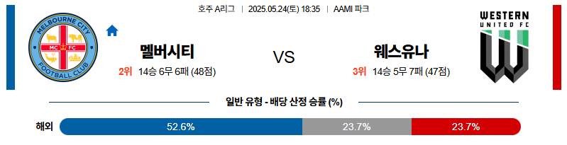 멜버른시티 대 웨스턴유나이티드 호주A리그 05월24일 맞대결 생중계, 스포츠중계, 스포츠분석