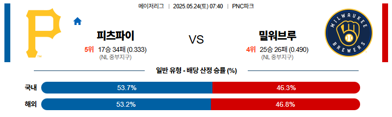 피츠버그 대 밀워키 MLB 05월24일 맞대결 생중계, 스포츠중계, 스포츠분석