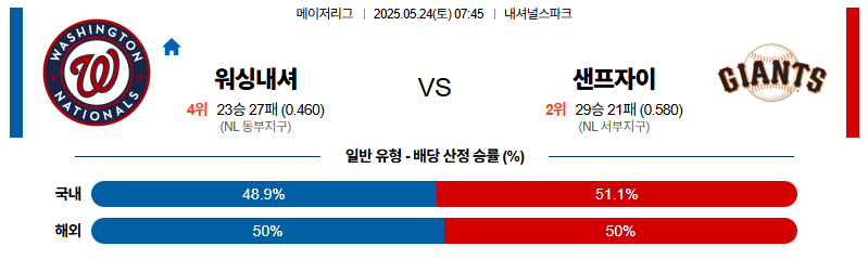 워싱턴 대 샌프란시스코 MLB 05월24일 맞대결 생중계, 스포츠중계, 스포츠분석