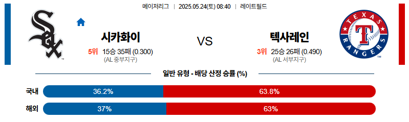 시카고W 대 텍사스 MLB 05월24일 맞대결 생중계, 스포츠중계, 스포츠분석