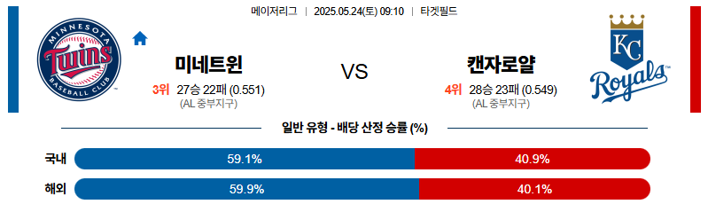미네소타 대 캔자스시티 MLB 05월24일 맞대결 생중계, 스포츠중계, 스포츠분석