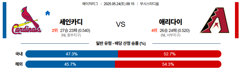 세인트루이스 대 애리조나 MLB 05월24일 맞대결 생중계, 스포츠중계, 스포츠분석