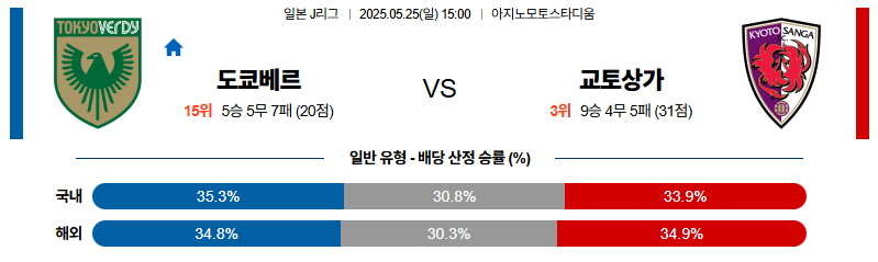 도쿄베르디 대 교토상가 J리그1 05월25일 맞대결 생중계, 스포츠중계, 스포츠분석
