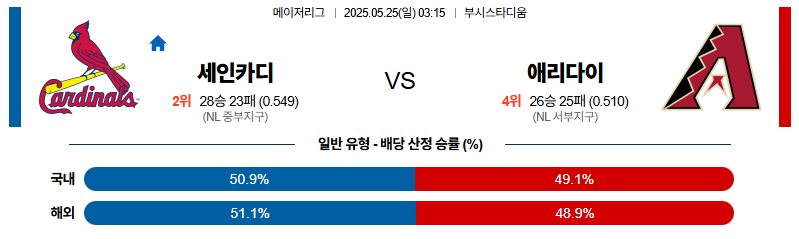 세인트루이스 대 애리조나 MLB 05월25일 맞대결 생중계, 스포츠중계, 스포츠분석