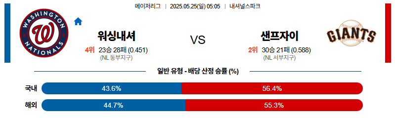 워싱턴 대 샌프란시스코 MLB 05월25일 맞대결 생중계, 스포츠중계, 스포츠분석
