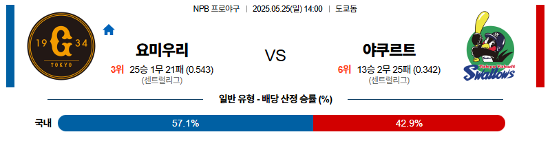 요미우리 대 야쿠르트 NPB 05월25일 맞대결 생중계, 스포츠중계, 스포츠분석