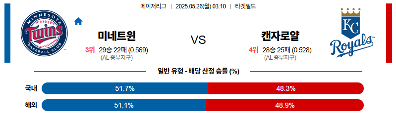 미네소타 대 캔자스시티 MLB 05월26일 맞대결 생중계, 스포츠중계, 스포츠분석