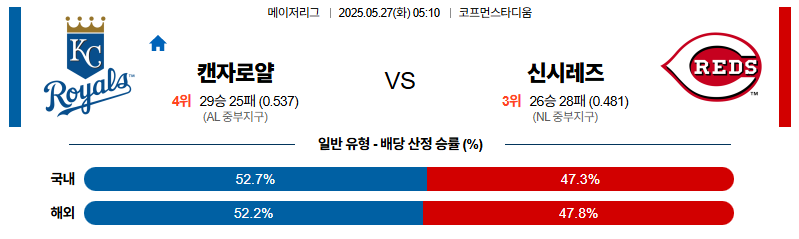 캔자스시티 대 신시내티 MLB 05월27일 맞대결 생중계, 스포츠중계, 스포츠분석