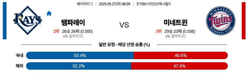 탬파베이 대 미네소타 MLB 05월27일 맞대결 생중계, 스포츠중계, 스포츠분석