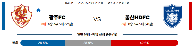 광주 대 울산 K리그1 05월28일 맞대결 생중계, 스포츠중계, 스포츠분석