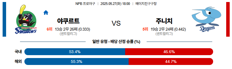 야쿠르트 대 주니치 NPB 05월27일 맞대결 생중계, 스포츠중계, 스포츠분석
