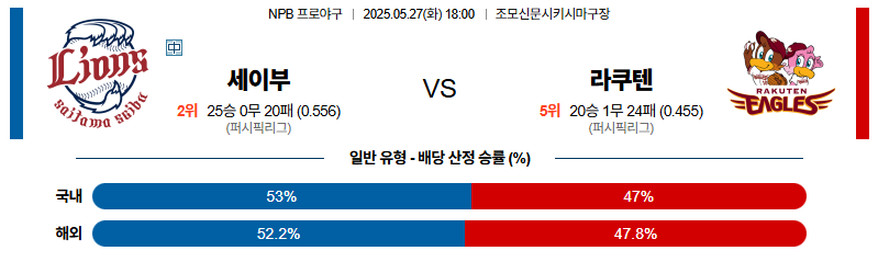 세이부 대 라쿠텐 NPB 05월27일 맞대결 생중계, 스포츠중계, 스포츠분석